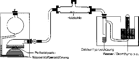 Daß Stärke durch die im Speichel enthaltene Amylase in Glucose zerlegt wird, läßt sich demonstrieren, indem man in eine Stärkelösung spuckt und bereits nach kurzer Zeit (im Thermostat bei 35-40 °C) mit Iod keine Stärke mehr nachweisen kann, während eine Fehling-Probe positiv ausfällt. In einem zweiten Versuch kann man die Wirkung von Lipase studieren. Man gibt in eine ganz leicht alkalische und mit Phenolphthalein angefärbte Speiseölemulsion (1 mL Öl, 1 mL Wasser) etwas Pancreatin (im Chemikalienhandel erhältlich). Nach kurzer Zeit (im Thermostat bei 35-40 °C, gelegentlich umschütteln, Vergleichsversuch ohne das Enzym durchführen) ist durch Fettspaltung ausreichend -säure entstanden, so daß die rote Farbe des Indikators verschwindet. In einem Leistungskurs können auch zeitaufwendigere Versuche zum Vergleich der Aktivität verschiedener Pancreatinproben, die sowohl Amylase als auch Lipase enthalten und z.B. von verschiedenen Herstellern stammen oder unterschiedlich alt sind, durchgeführt werden [16, 17].